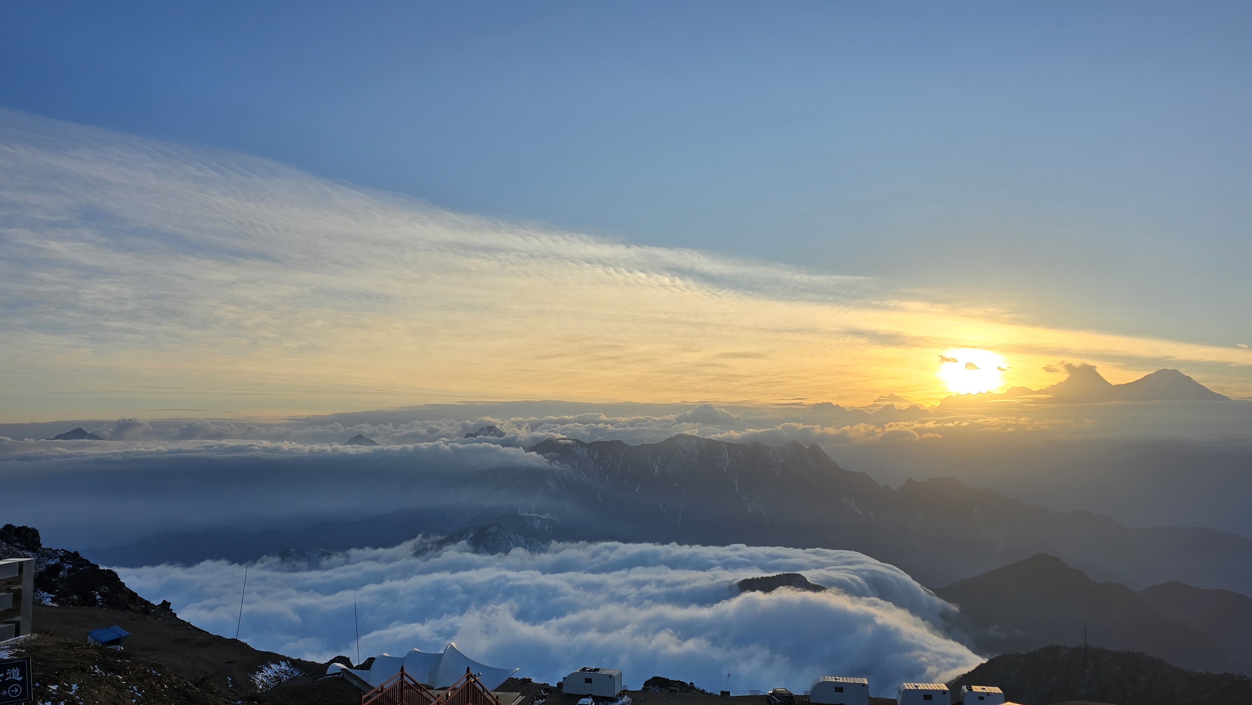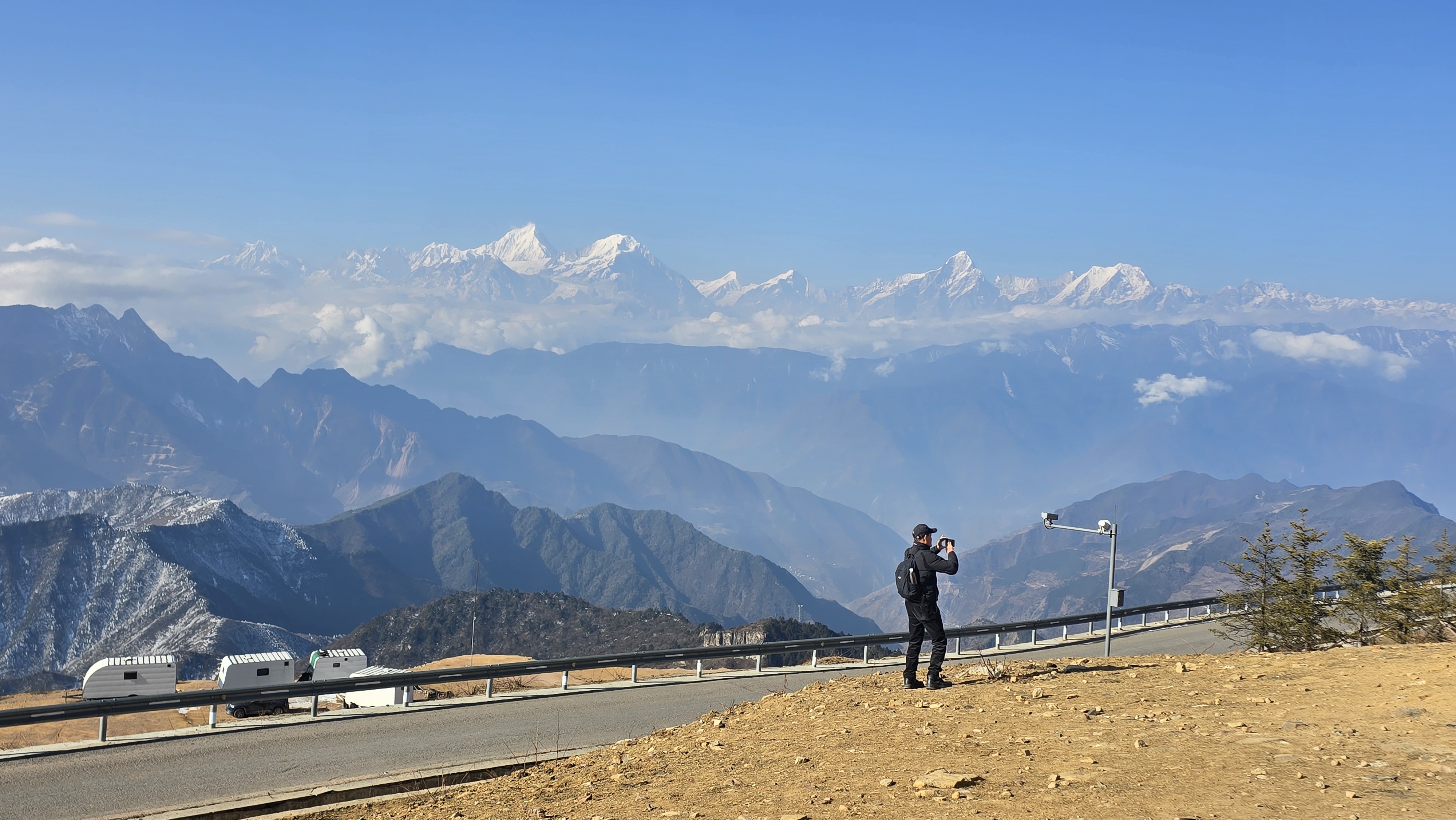 내가 있는곳은 3,800m이고, 그발아래 마치 솜철같은 구름이 널려있고..그구름은 뚫고 우뚝 솟은 7,000m 이상되는 산봉우리들이 비현실적으로 펼쳐진다.